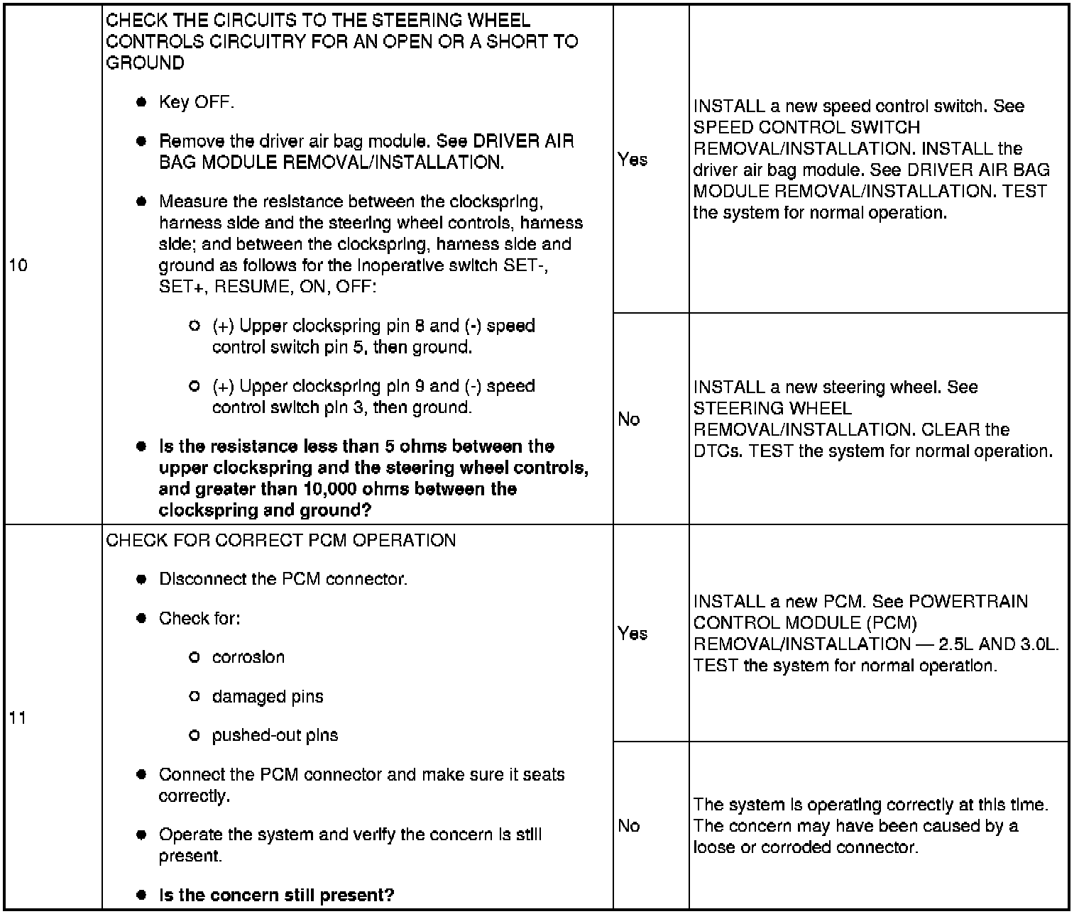 PINPOINT TEST 3: THE SPEED CONTROL SWITCHES DO NOT OPERATE CORRECTLY