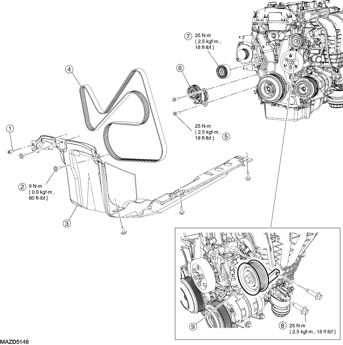 FRONT END ACCESSORY DRIVE (FEAD) EXPLODED VIEW - 2.5L