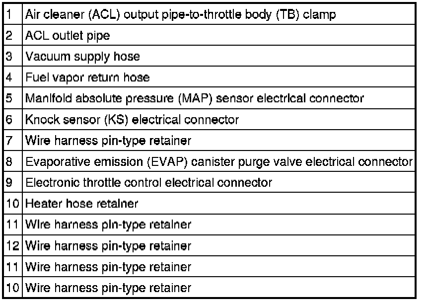 11. Loosen the clamp and disconnect the air cleaner (ACL) outlet pipe from the throttle body (TB).