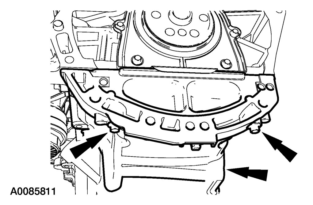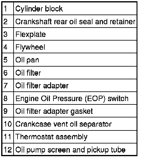 CAUTION:During engine repair procedures, cleanliness is extremely important. Any foreign material, including any material created while cleaning gasket surfaces that enters the oil passages, coolant passages or the oil pan, can cause engine failure.