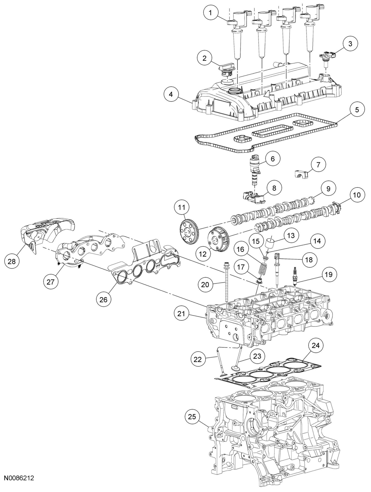 - Stage 1: Tighten the camshaft bearing cap bolts one at a time until finger-tight.