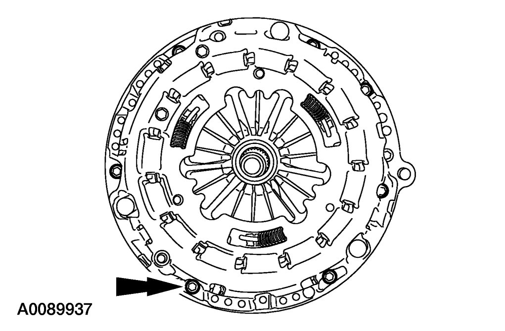 CAUTION:Loosen the bolts evenly to prevent pressure plate damage.