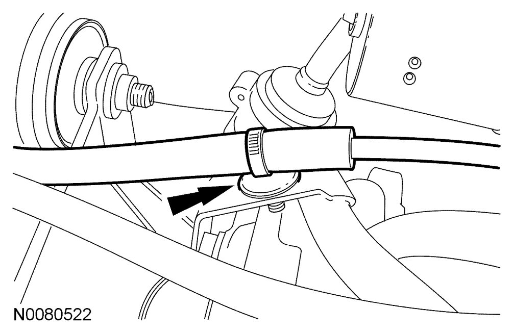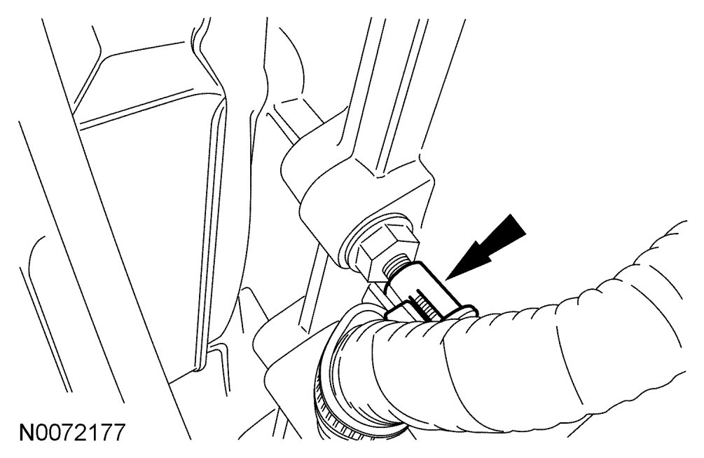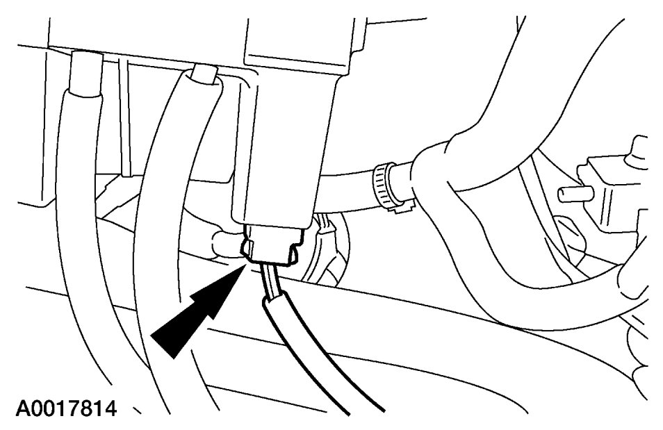 19. Attach the heater hose support strap to the stud.