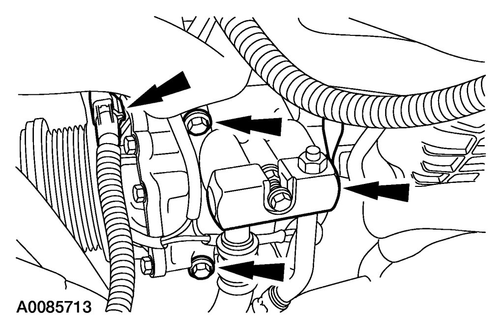 11. Install the A/C compressor and connect the A/C compressor electrical connector.