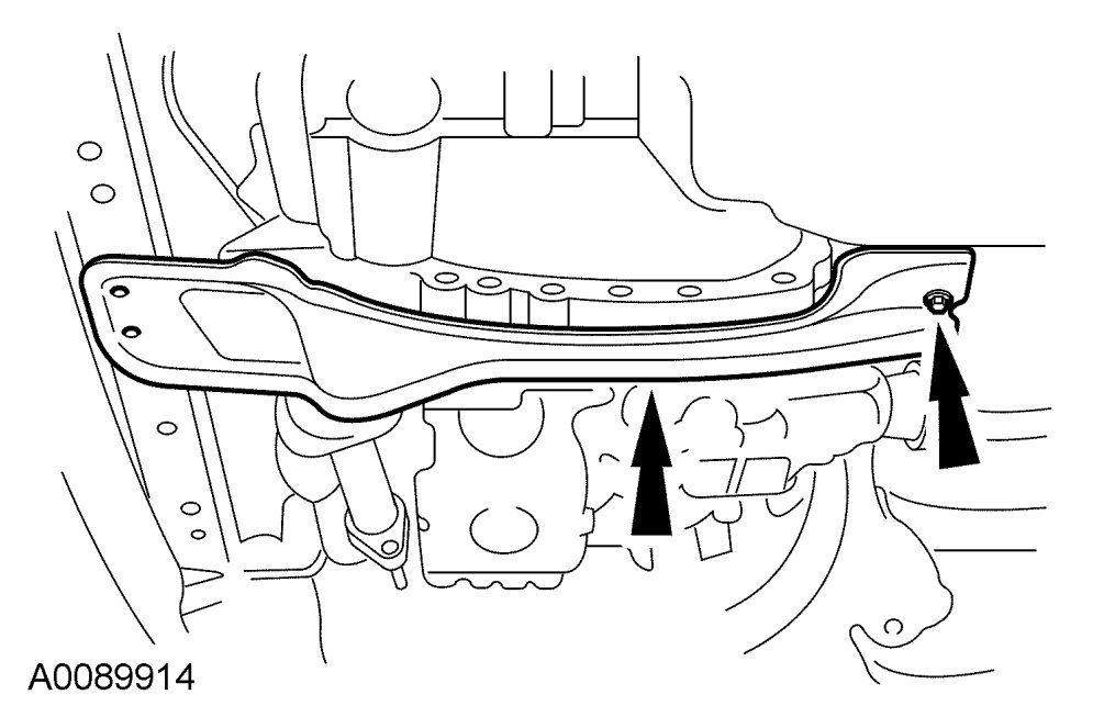 - Tighten the engine support crossmember bolts to 90 Nm {9.1 kgf-m, 66 ft-lbf}.