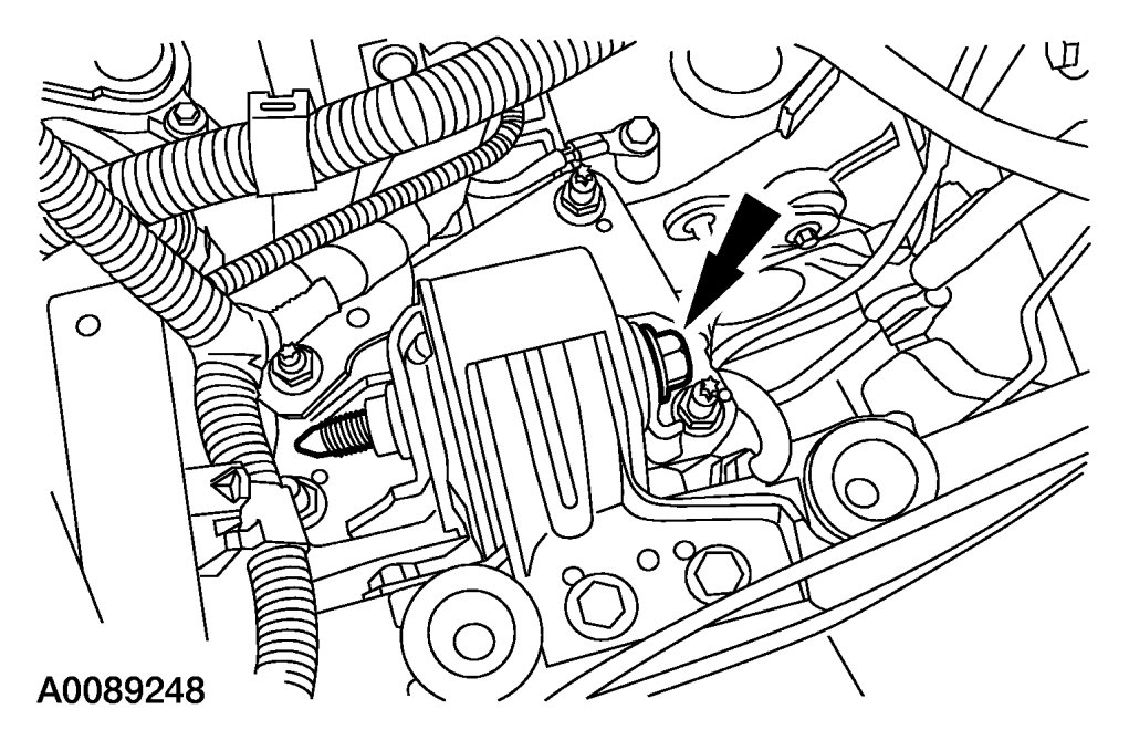 8. Install the engine support crossmember and new nut.