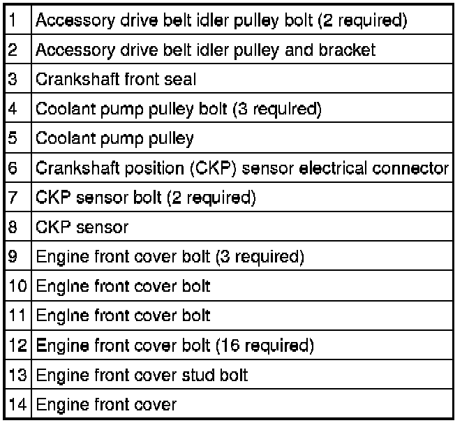 3. Install the engine front cover. Tighten the bolts in the sequence shown, to the following specifications: