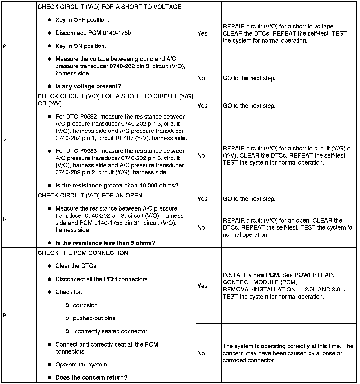 Pinpoint Test 12: DTC P0532 or P0533