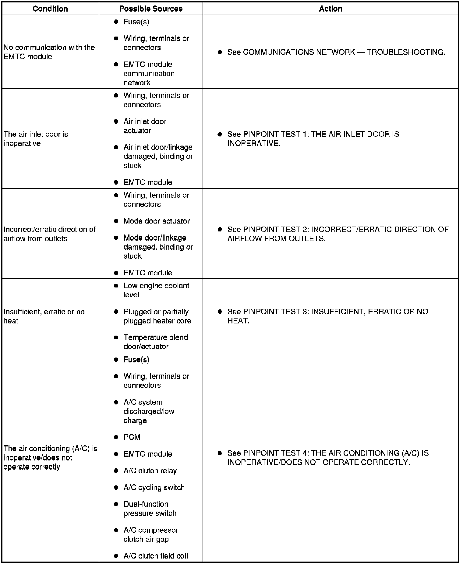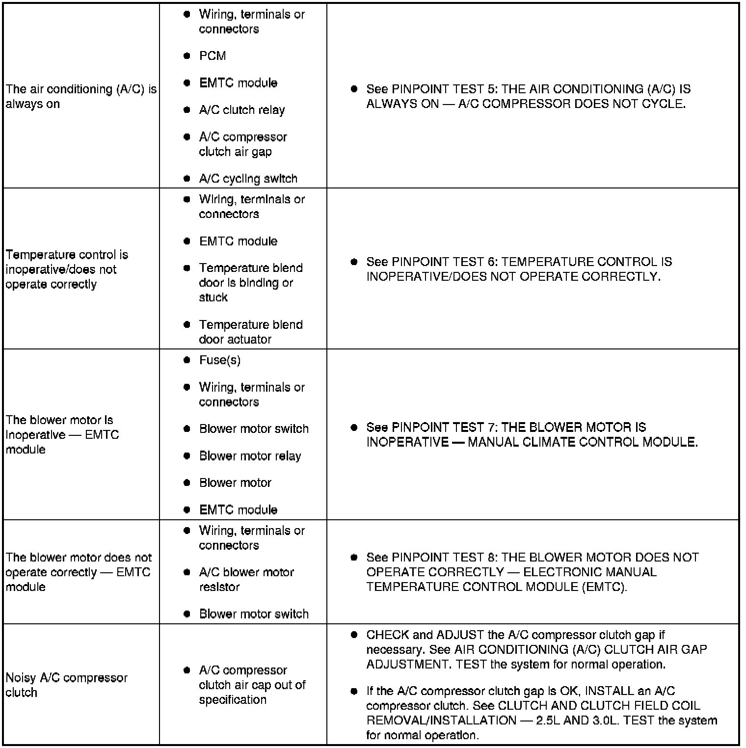 SYMPTOM TROUBLESHOOTING CHART - CLIMATE CONTROL