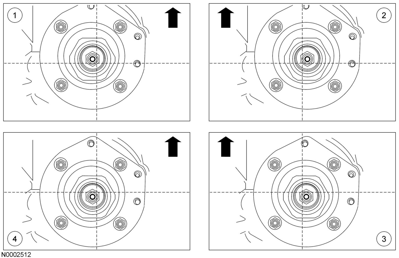 2. Remove the 4 front strut upper mounting bracket nuts.