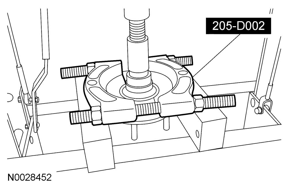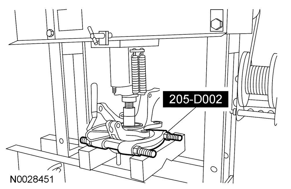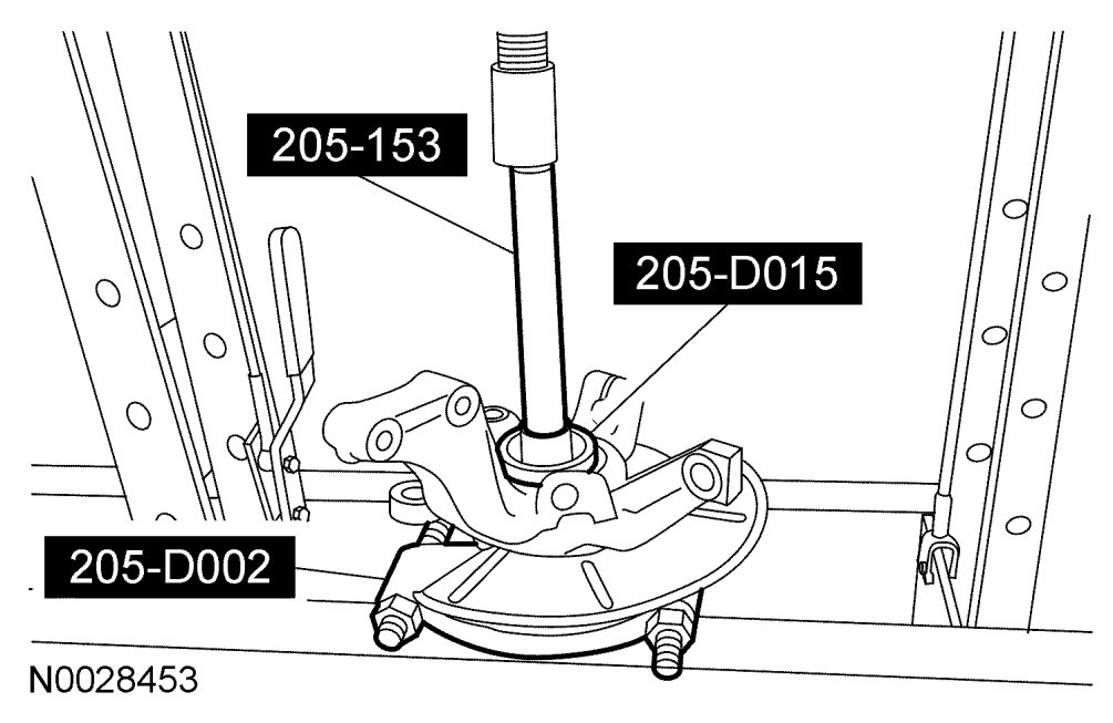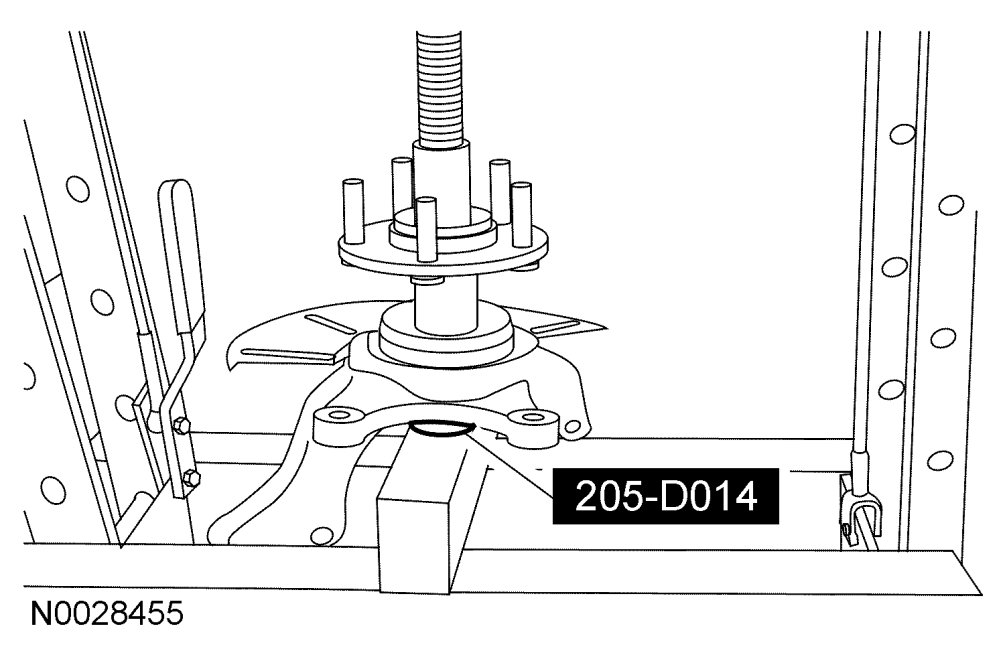 NOTE:Special Tool 205-278 is not seen in place. It is located behind the wheel knuckle.