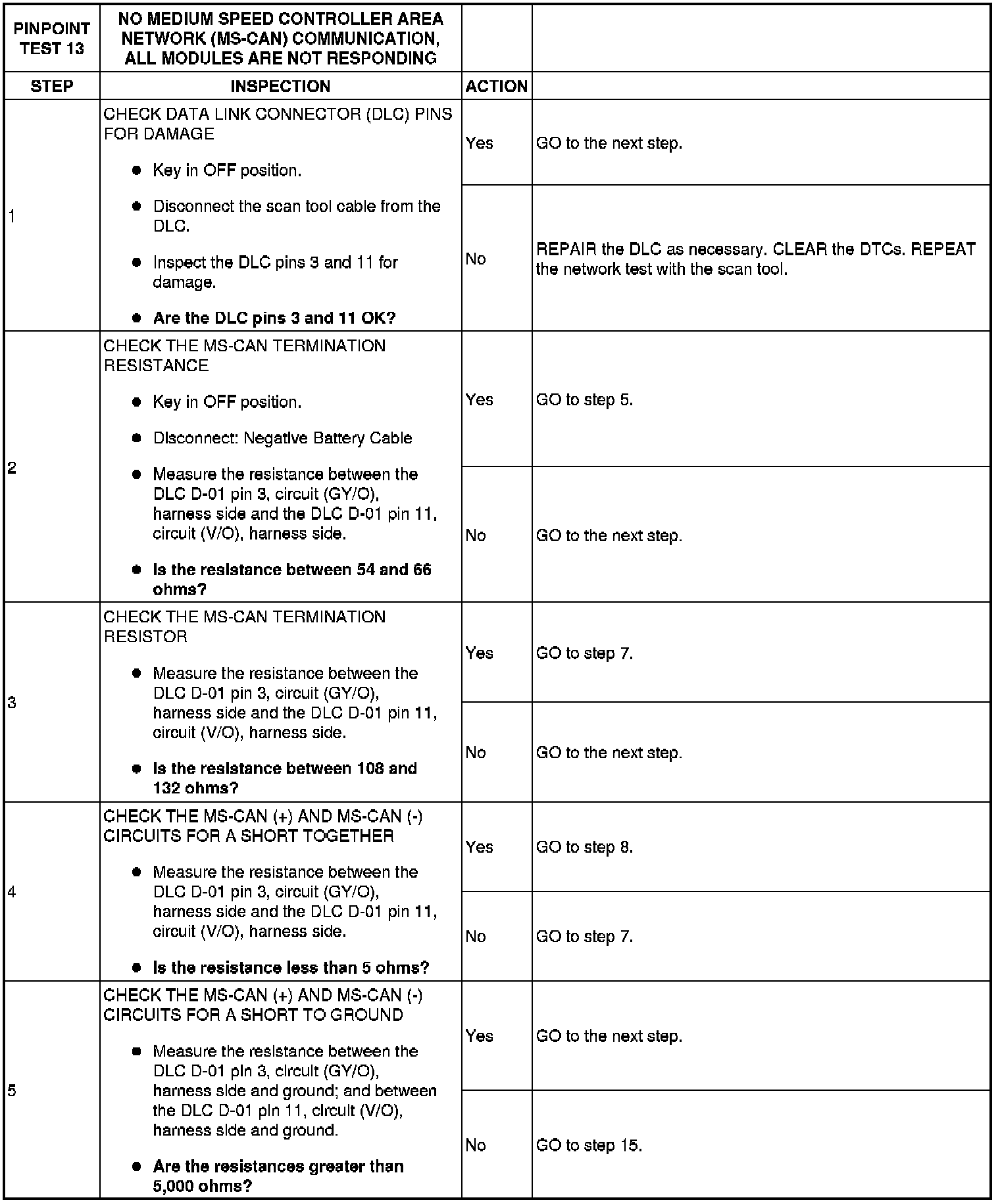 Pinpoint Test 13: No Medium Speed Controller Area Network (MS-CAN) Communication, All Modules Are Not Responding