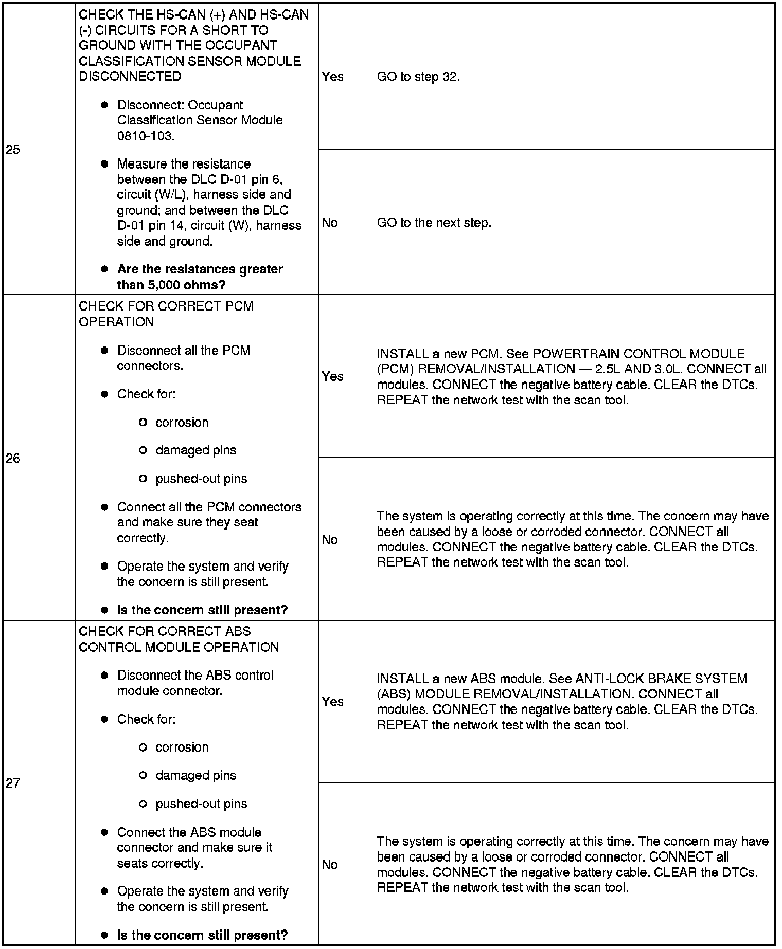 Pinpoint Test 16: No High Speed Controller Area Network (HS-CAN) Communication, All Modules Are Not Responding