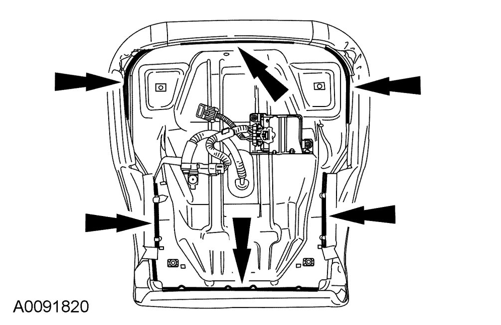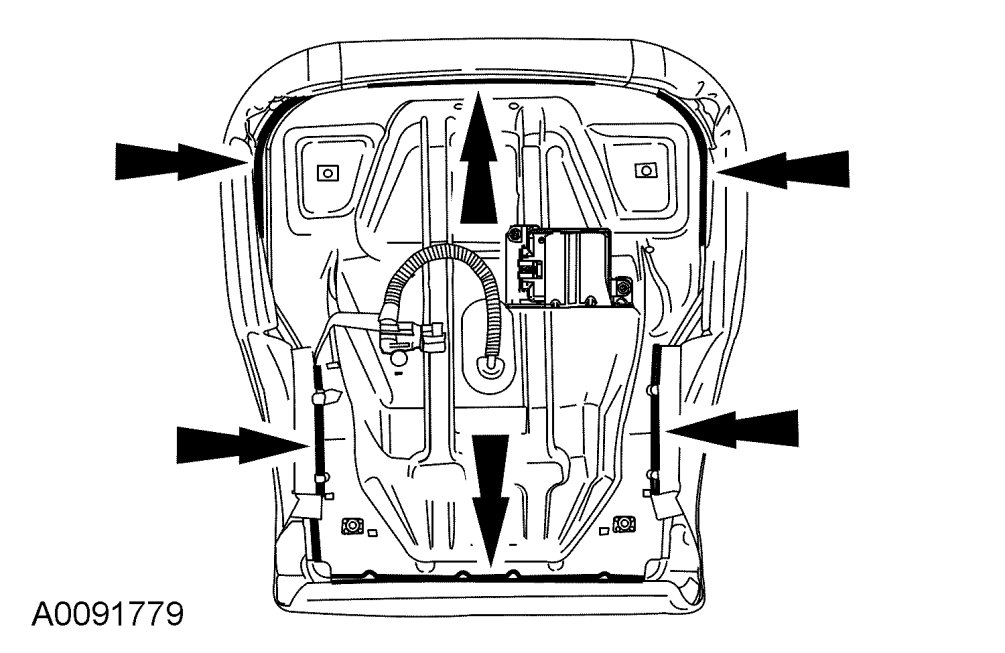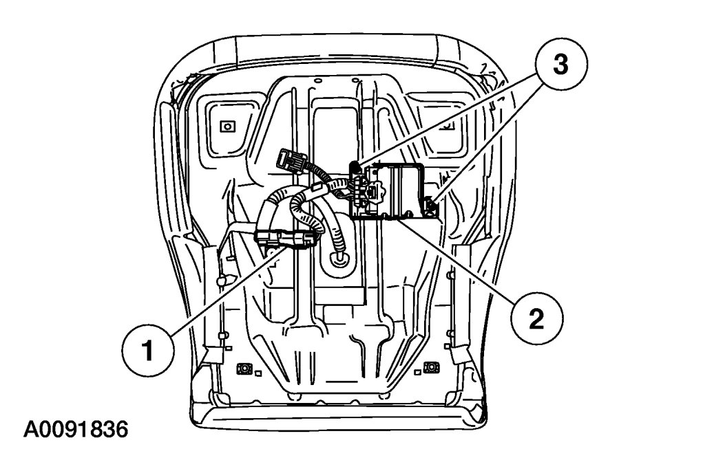 CAUTION:To prevent system failure, it is necessary to carry out the Occupant Classification Sensor (OCS) system reset when a front passenger seat cushion is disassembled, a new trim cover installed or an OCS system service kit is installed. A scan tool is used to carry out the OCS system reset command.