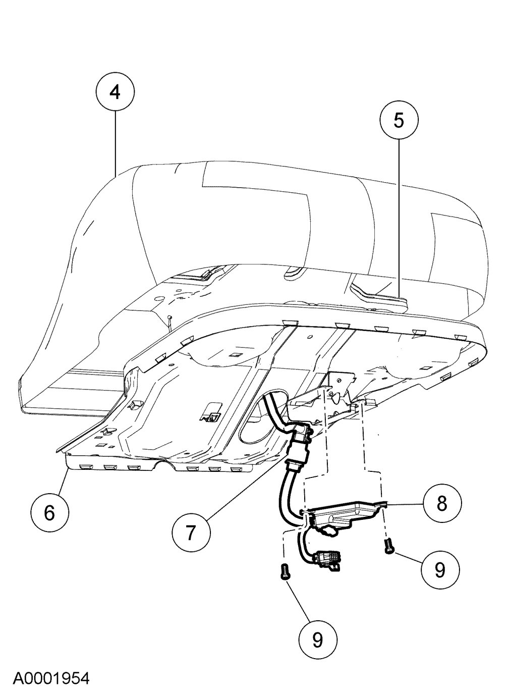 NOTE:When installing a new occupant classification sensor, a prepaid return postcard is provided with the new occupant classification sensor. The serial number for the new part and the vehicle identification number (VIN) must be recorded and sent to Mazda North American Operations.
