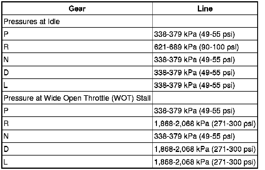 Line Pressure Chart