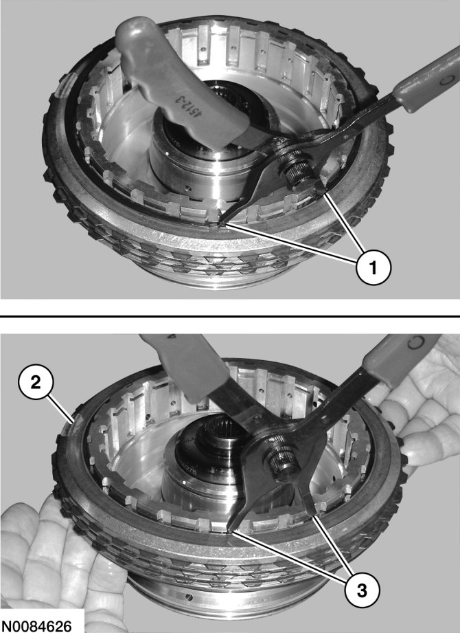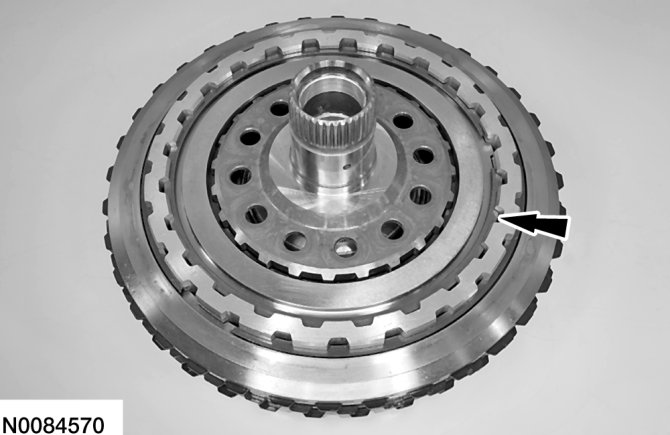 a. Slightly lift up on the direct (3, 5, R) clutch so that the snap ring floats freely.