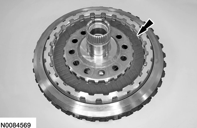 b. Lift the direct (3, 5, R) clutch so that the snap ring is in the groove of the pressure plate.