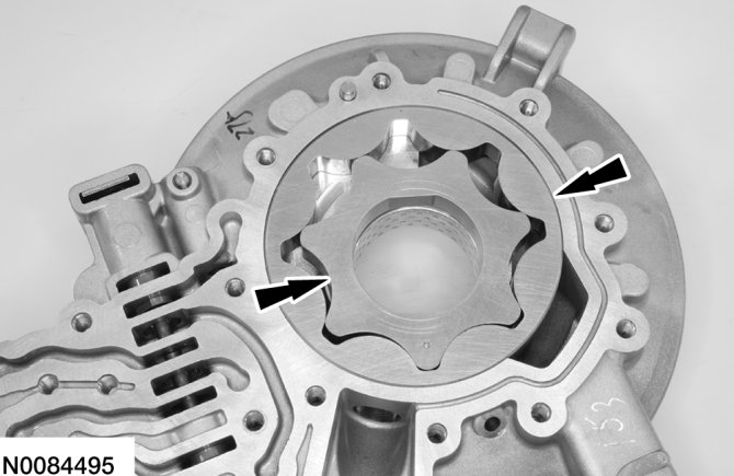 NOTE:The dot on the inner pump gear faces up.