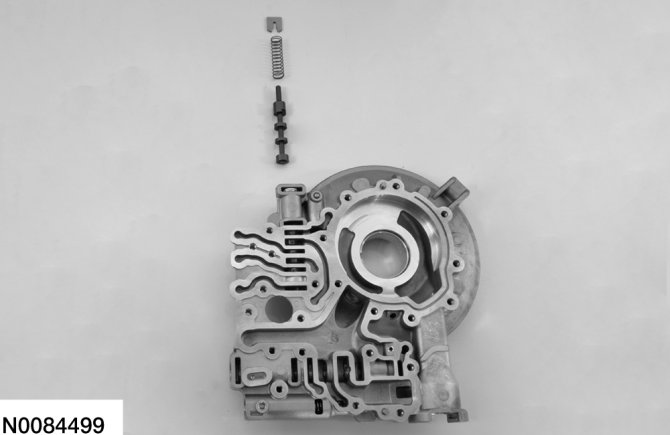 1. Assemble the TCC control valve and main pressure regulator valve and install the valves in the pump. Compress the valve springs with a screwdriver and install the retainers
