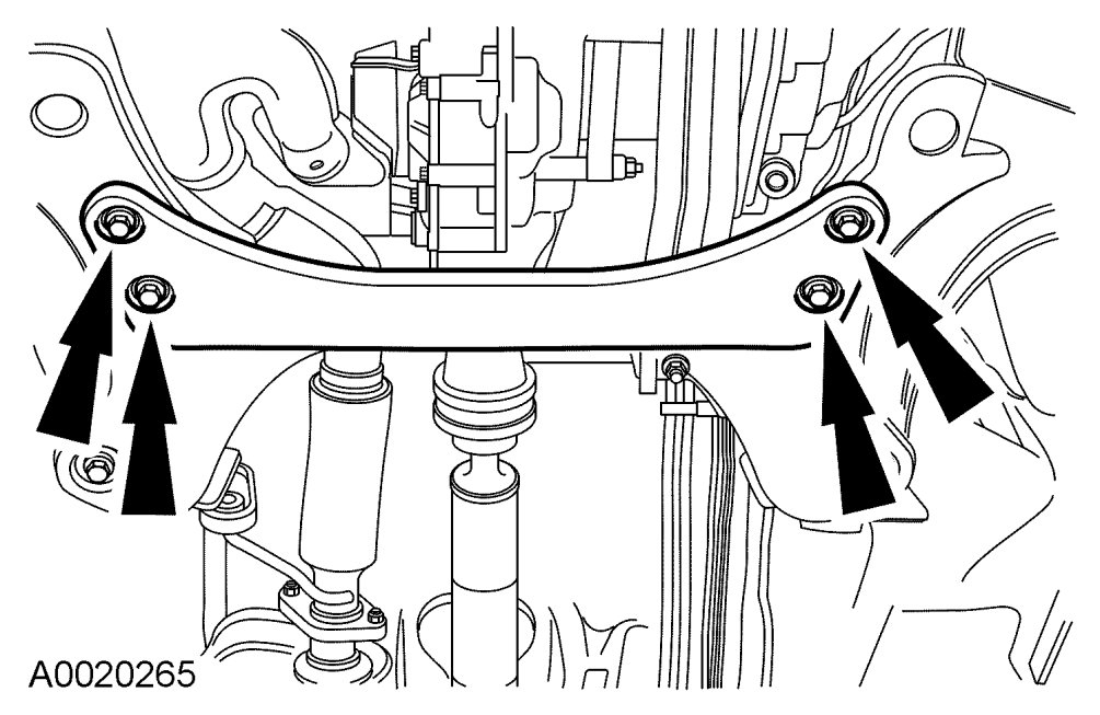 - Tighten the cross brace bolts to 90 Nm {9.0 kgf-m, 66 ft-lbf}.