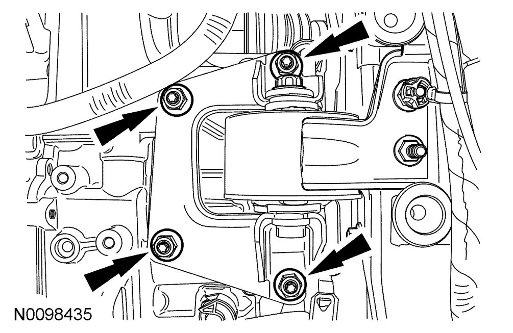 6. Position the transaxle support insulator bracket in place and install the 4 nuts.