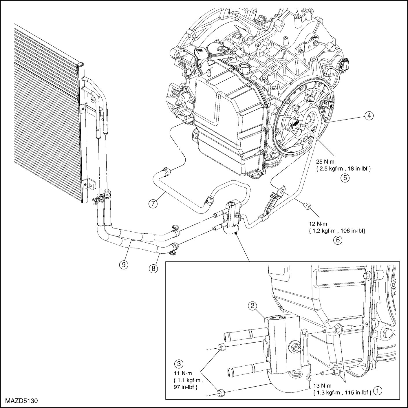 - Tighten to 25 Nm {2.5 kgf-m, 18 ft-lbf}.