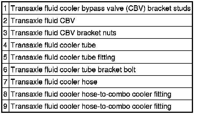 NOTE:The transaxle fluid CBV cannot be successfully cleaned by back flushing, flushing or disassembly. For vehicles that are equipped with this cold weather bypass valve, a new valve should be installed whenever the transaxle is being overhauled.