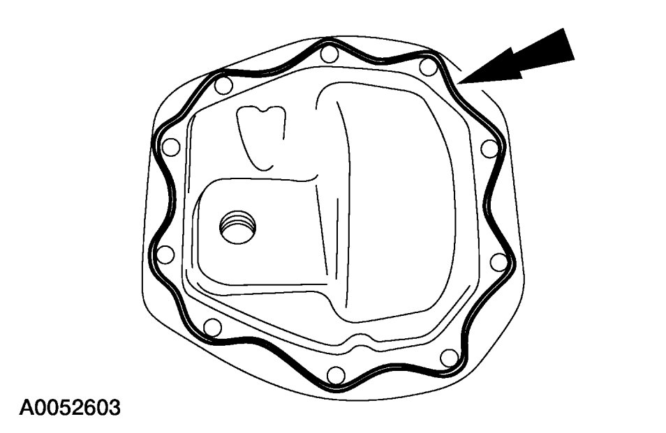 NOTE:The differential housing cover must be installed within 15 minutes of application of the silicone, or new sealant must be applied. If possible, allow 1 hour before filling with lubricant to make sure the silicone sealant has correctly cured.