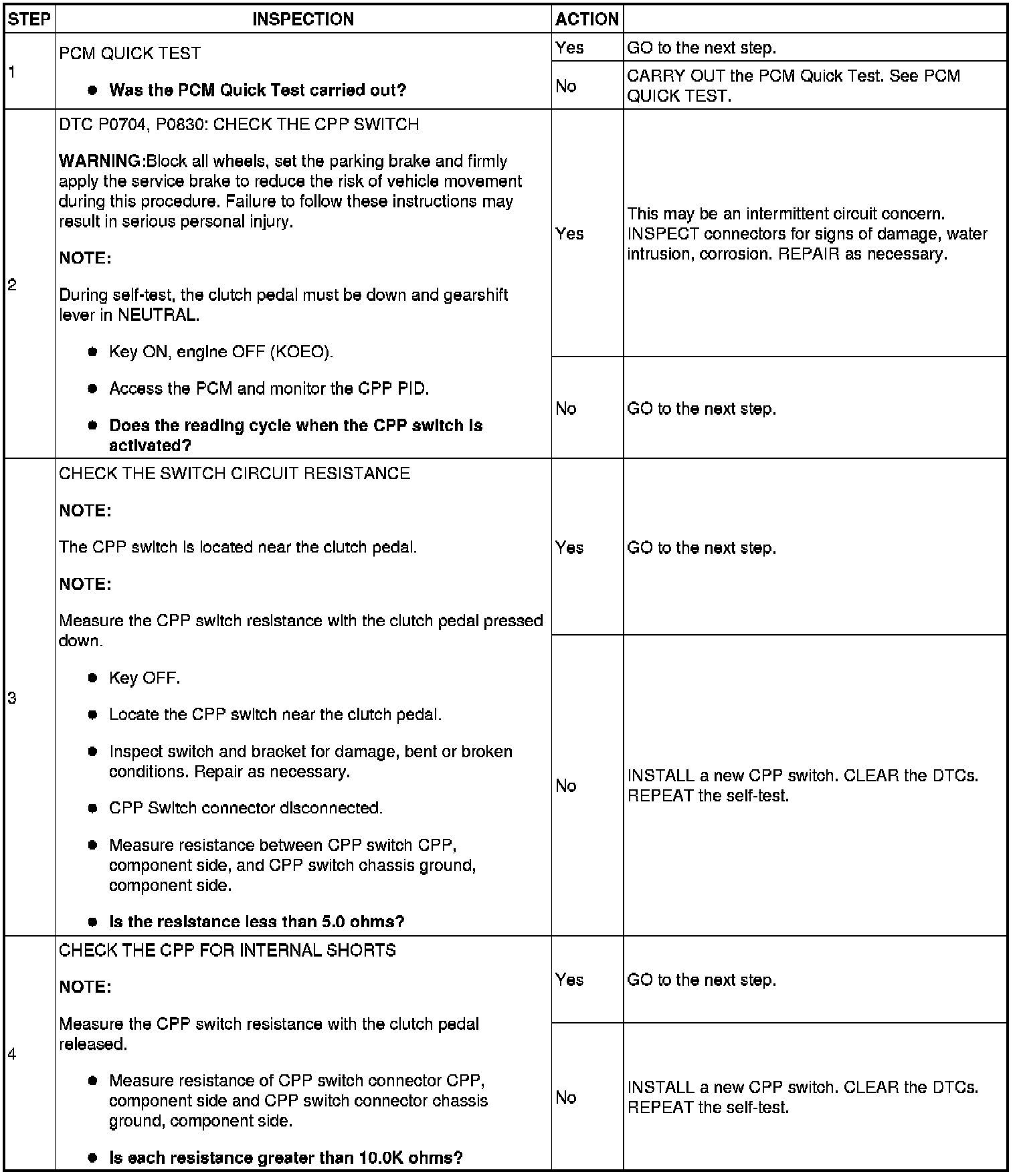 CLUTCH PEDAL POSITION (CPP) SWITCH MALFUNCTION