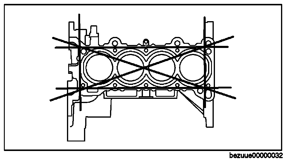 CYLINDER BLOCK INSPECTION1. Measure the distortion in six directions as shown in the figure using a square and feeler gauge.