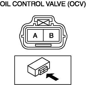 - When applying battery positive voltage between the oil control valve terminals, the connection of the negative and positive cable can be either the A or B terminal.