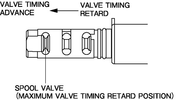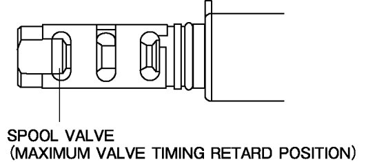 3. Verify that the spool valve inside the OCV is at the maximum valve timing retard position as shown in the figure.