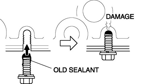 3 Using bolts with the old seal adhering could cause cracks in the cylinder block.