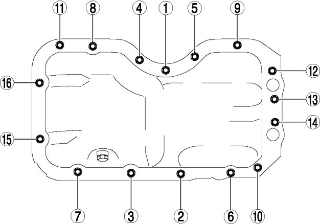 3. Apply silicone sealant to the oil pan along the inside of the bolt holes as shown in the figure.