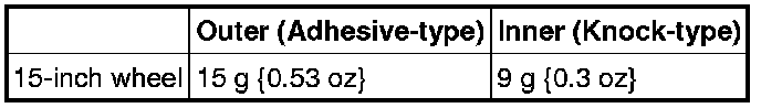 - When attaching the weight, press the weight with a force of 25 N {2.5 kgf, 5.6 lbf} per 5 g {0.2 oz} for 2 s or more.