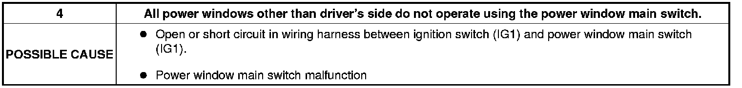 No. 4 All Power Windows Other Than Driver's Side Do Not Operate Using The Power Window Main Switch