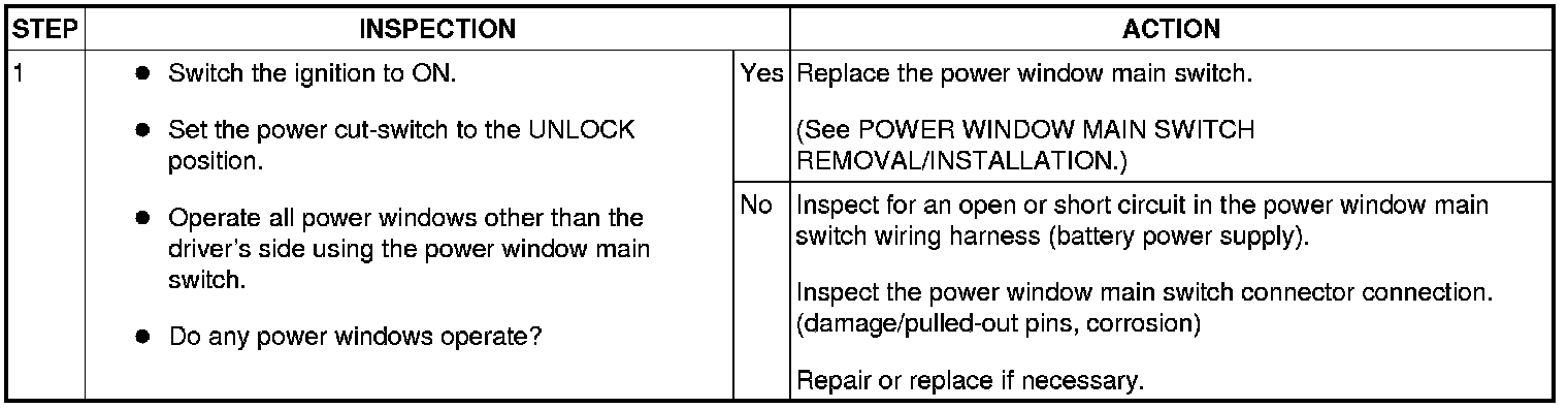 No.4 ALL POWER WINDOWS OTHER THAN DRIVER'S SIDE DO NOT OPERATE USING THE POWER WINDOW MAIN SWITCH [POWER WINDOW SYSTEM]