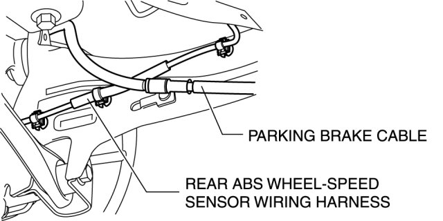 1. Pass the parking brake cable inside the rear ABS wheel-speed sensor wiring harness as shown in the figure.