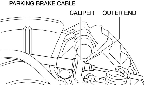 3. Verify that the end of the parking brake cable outer end is out of the caliper as shown in the figure.