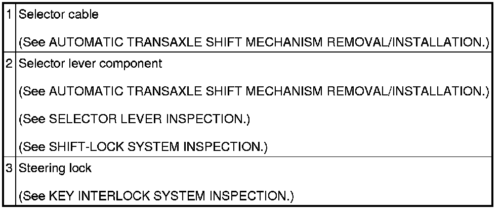 AUTOMATIC TRANSAXLE SHIFT MECHANISM LOCATION INDEX