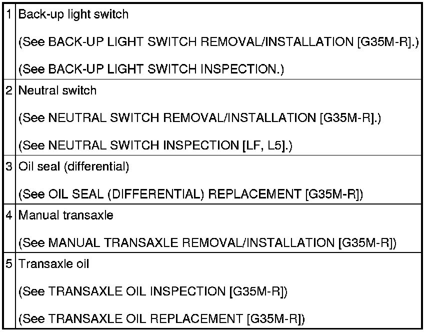 MANUAL TRANSAXLE LOCATION INDEX [G35M-R]