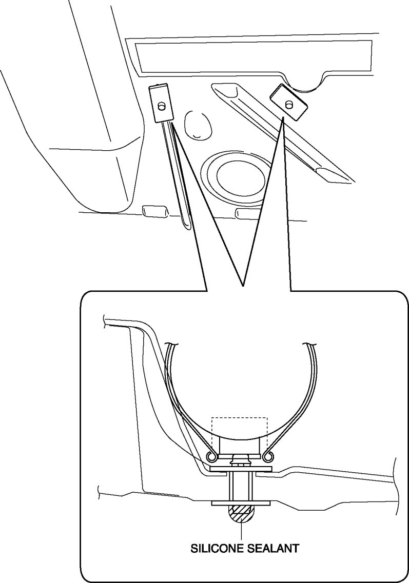 9. Apply silicone sealant to the shaded area on the under body as shown in the figure.