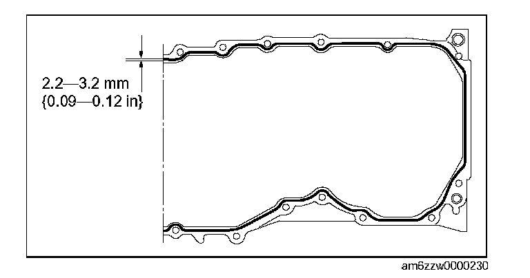 Oil pan Assembly Note1. Apply a continuous bead of silicone sealant to the oil pan as indicated in the figure.