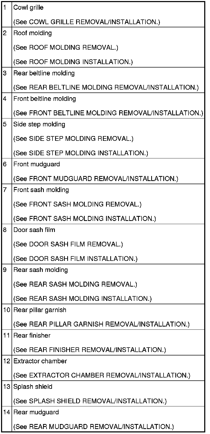 EXTERIOR TRIM LOCATION INDEX