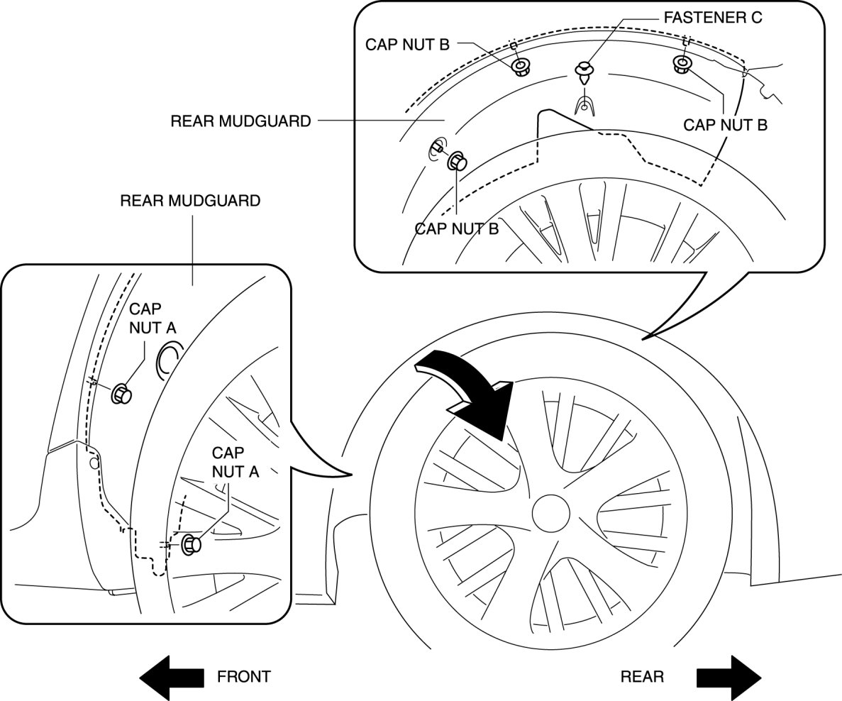 REAR MUDGUARD REMOVAL/INSTALLATION