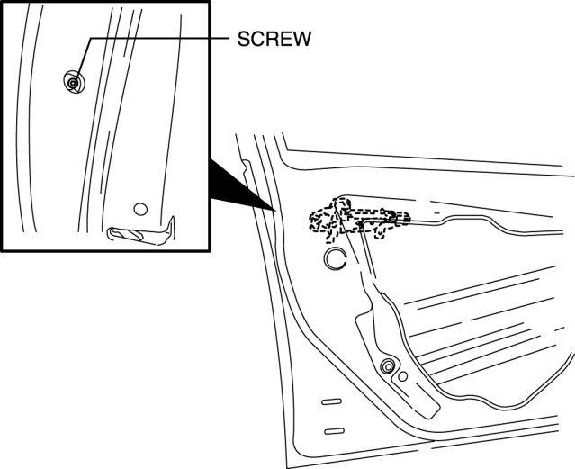 1. To access the glass installation bolt, position the front door glass so that the distance from the top of the front door glass to the upper part of the front beltline molding is approx. 80 mm {3.1 in}.