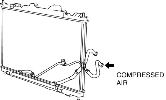 4. Add new ATF from the oil cooler hose outlet and blow 491-882 kPa {5.01-8.99 kgf/cm2, 71.3-127.0 psi} of compressed air to flush. (Repeat 2 or 3 times)