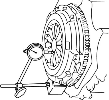 4. When checking the diaphragm spring fingers, mount a dial indicator on the cylinder block.