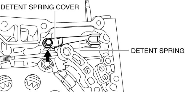 69. Install the detent spring cover and detent spring to the transaxle case.